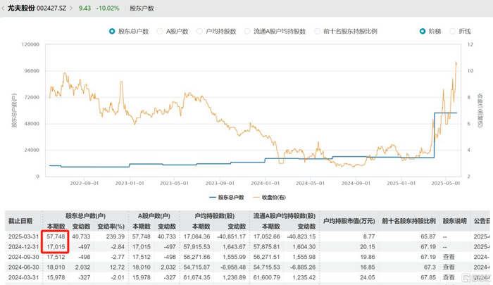 股东户数方面,近期随着公司股价大涨,股民疯狂涌入,股东总户数由24Q4的1.7万增至25Q1的5.77万。