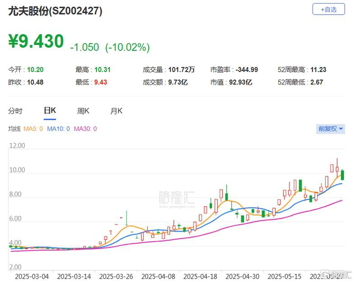 今日高位人气股持续下挫。其中,被市场资金反复炒作了两个来月的尤夫股份,今日触及跌停。