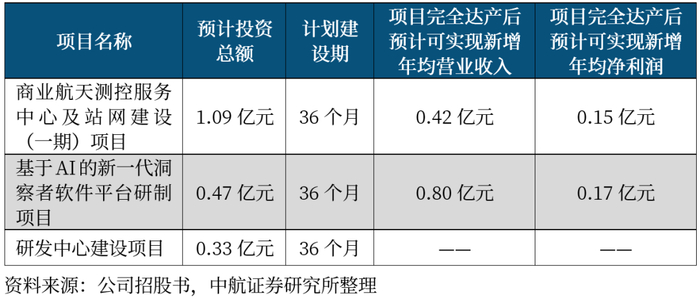 4. 从IPO募集资金投向来看,公司在建的三个研发项目有望持续巩固其在商业航天测运控领域的技术研发优势和综合竞争力,项目的建成落地有望在中长期持续推动公司增收增利。