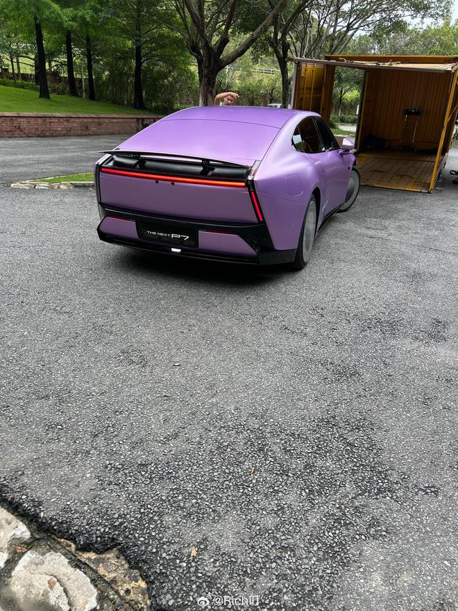 IT之家 5 月 30 日消息,博主 @Rich叮 今日放出一组全新小鹏 P7 的实车动态影像,与此前官图不同的是,画面中的两辆新车分别采用了亮银和哑光紫的配色,但不排除是车衣的可能。