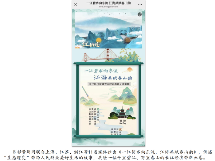在丰富表达、融合传播上实现了有效探索。将AIGC、虚拟现实(VR)、增强现实(AR)等新兴技术与媒体技术相融合,为用户提供沉浸式、智能化的体验,多重形式结合讲述贵州故事。用3D+AR手法《带你看文物里的贵州新图景》,以AICG视角看长江沿岸《一江相连,遍地春山!》的焕新模样,用AI绘景《看2024贵州蓝图》。2024年,打造10万+作品200余件、百万级作品40余件、千万级作品10余件,其中《高原贵州兵》专题作品全网曝光量达5500万。