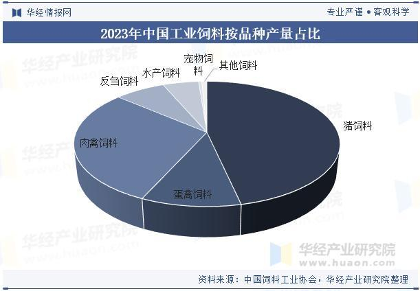 猪饲料是中国工业饲料的最大品种之一。近年来,受非洲猪瘟的影响,猪饲料产量曾有所波动,但总体需求仍然强劲。2023年猪饲料产量占总饲料产量的约46%。其次为肉禽饲料。占比超过29%。肉禽饲料主要包括肉鸡饲料、肉鸭饲料和其他肉禽饲料。其中,肉鸡饲料占据了大部分市场份额,因为肉鸡养殖是中国最主要的禽肉生产方式。