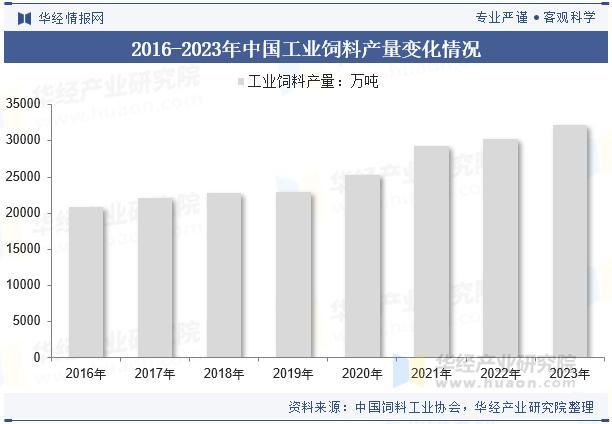 随着中国人口的增加和消费水平的提高,对肉类、蛋类、奶制品和水产品的需求不断增长,推动了养殖业的发展,从而增加了对饲料的需求。规模化、集约化养殖模式的普及提高了养殖效率和生产能力,对高效、高品质饲料的需求也随之增加。我国工业饲料在经历2020年和2021年的快速增长之后,2022年有所放缓,2023年增速恢复至6.6%,产量为32162.7万吨。
