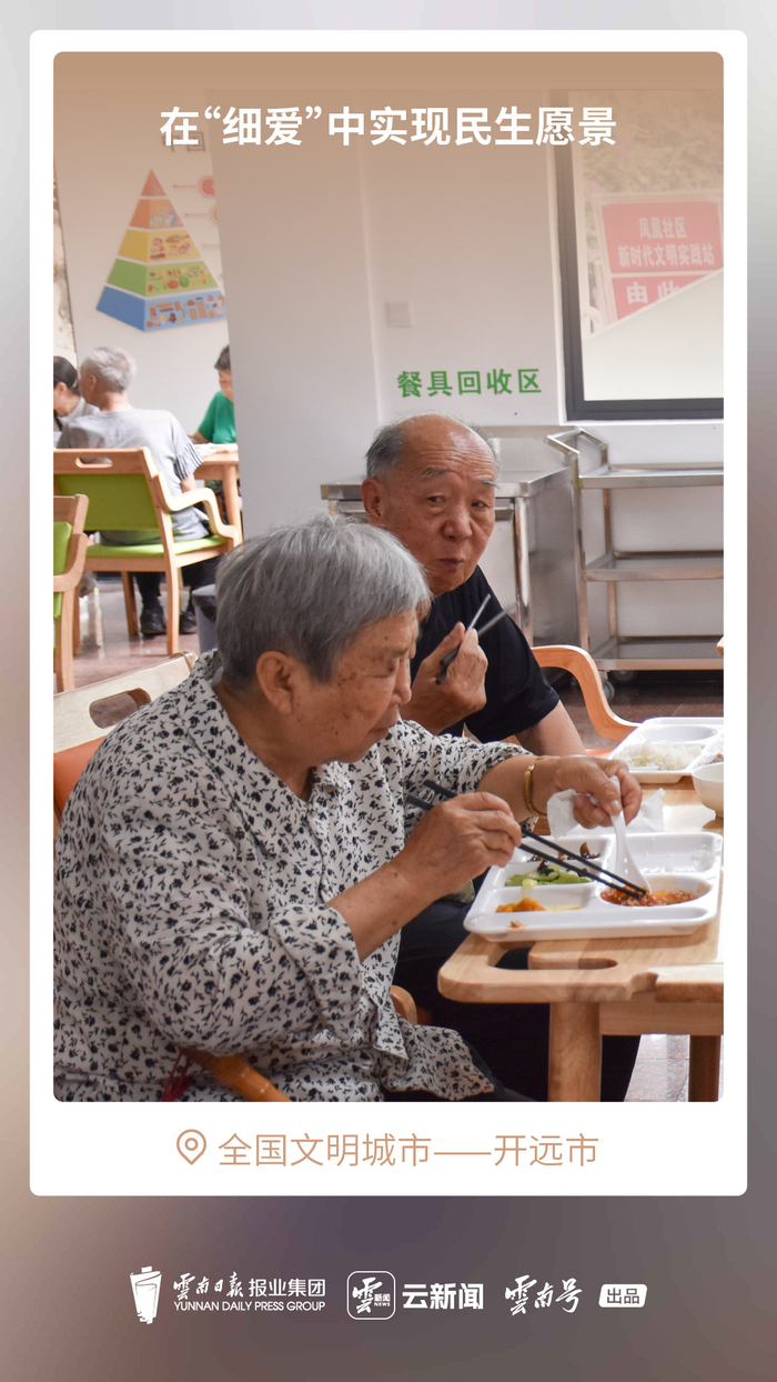 围绕“关爱一老”,开远市紧盯占全市总人口19.2%、总数达6.22万人的老年群体所需所求所盼,持续探索更丰富优质的养老模式和服务,倾力打造城区助餐服务体系——针对独居、空巢、留守、失能、残疾、高龄等特殊困难老年人开办6所老年幸福食堂,由运营方、社区工作者、志愿者等提供送餐助餐服务,在5个社区设置老年人助餐点,全面满足老年人“15分钟”养老服务需求,迄今已接待服务老年人30万余人次,大家纷纷点赞:“幸福食堂让我们尝到了幸福的滋味!”