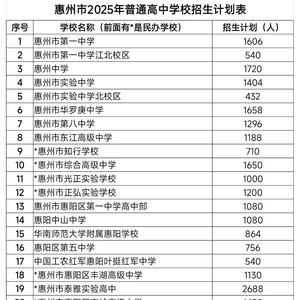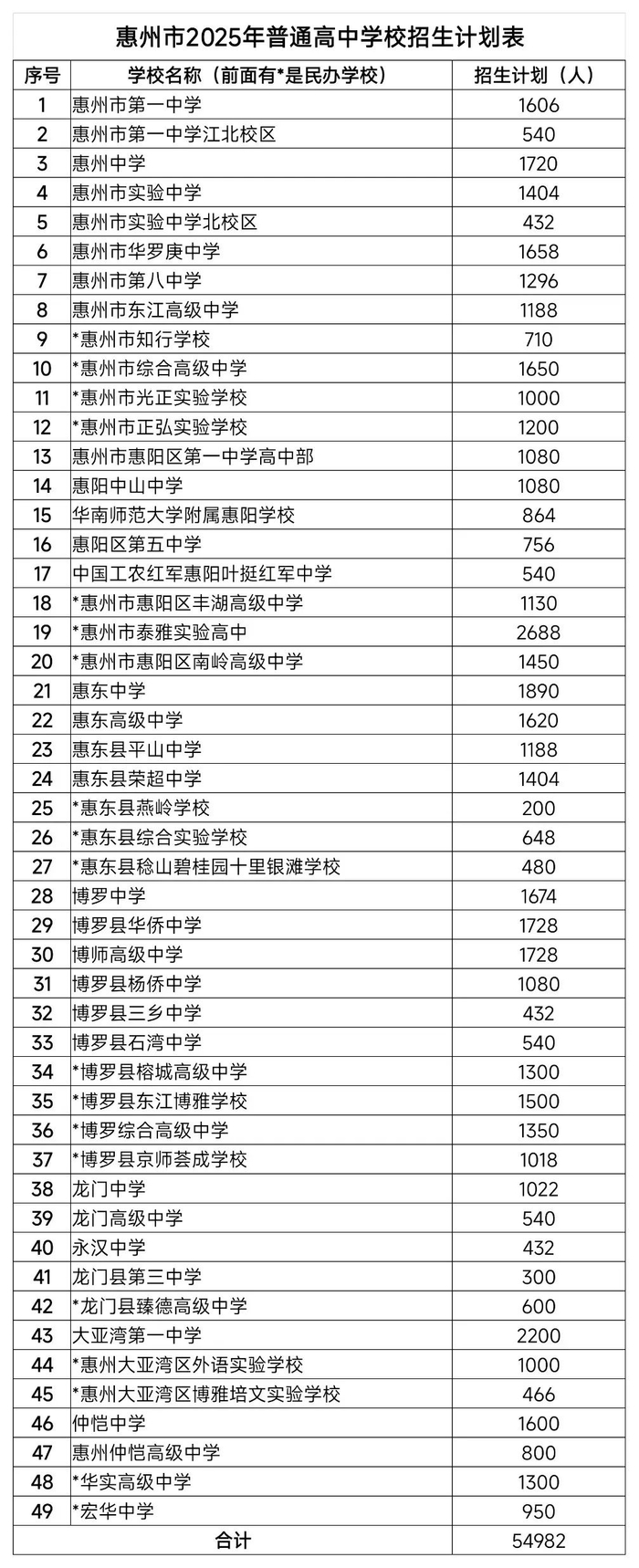 2025年惠州普通高中招生计划发布!49所学校招54982人