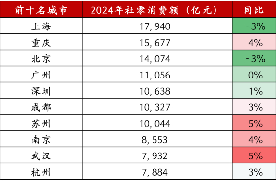 ▲图表5:2024年社零消费额前十名城市