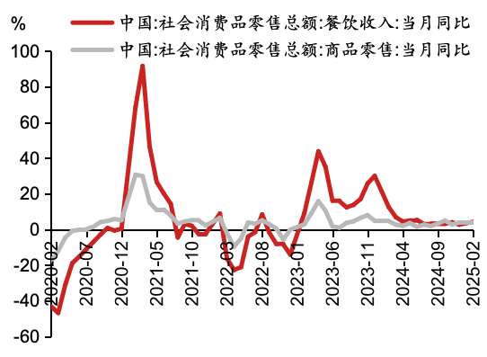 ▲图表2:餐饮收入及商品零售增速同比情况