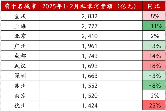 ▲图表6:2025年1-2月社零消费额前十名城市