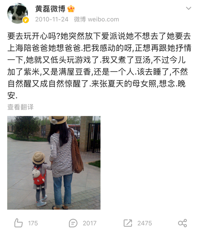 早在2010年,黄多多尚未参加《爸爸去哪儿》时,黄磊便经常在微博上晒一家人的日常,一日三餐、出行游玩,可谓无所不记、无所不发,俨然将微博当成了朋友圈,使得不少粉丝很早便认识了这个可爱的小女孩。