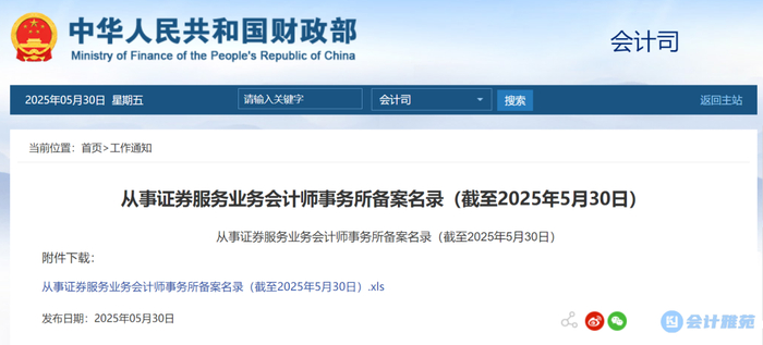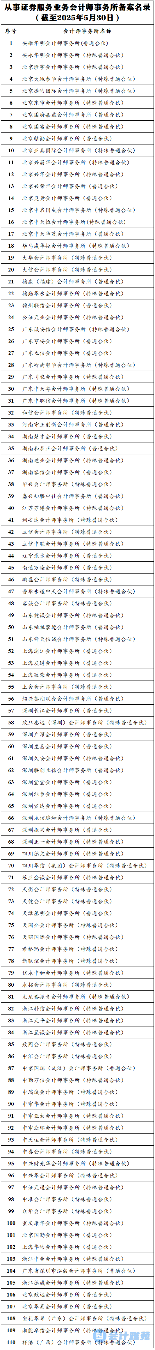 从事证券服务业务会计师事务所备案名录(截至2025年5月30日)
