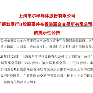 日前,韦尔股份发布公告称,根据公司总体发展战略及运营需要,公司拟发行境外上市股份(H股)并在香港联交所主板上市。