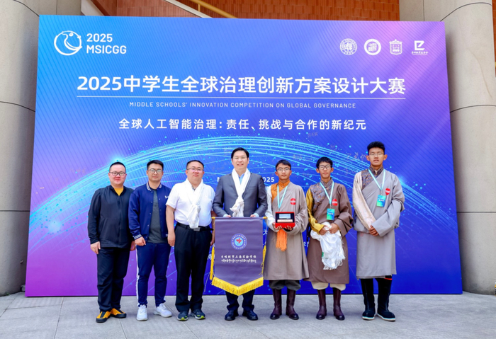 在本届大赛上,西藏自治区日喀则市上海实验学校的议题也备受关注。凭借《雪域智治:构建文化优先型 AI 治理框架的西藏实践》西藏自治区日喀则市上海实验学校荣获二等奖。该校三名选手以西藏非遗保护为独特切入点,通过数据主权重构、传承模式创新及伦理制度设计,推动西藏从“文化原生地”向“治理方案输出地”成功转型,充分彰显了其传统文化在全球 AI 治理中的独特价值。