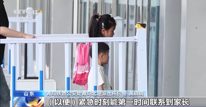 青岛铁路公安处青岛北站派出所民警 黄晓晓:在出行前,家长就要给孩子做好出行安全教育,让孩子牢记家长姓名、家庭住址等信息,熟背家长的电话号码,在孩子的衣服口袋内放置写有家长联系方式的卡片,以便紧急时刻能第一时间联系到家长。在出行时,家长们还可以给孩子穿颜色鲜艳的衣服,佩戴防走失手环等,同时要告知孩子,一旦走失,不要听信陌生人的话,一定要第一时间找身边的工作人员或者民警求助。