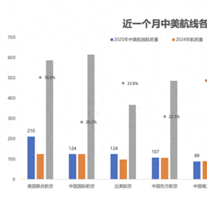 根据航班管家的最新统计,目前中美航线的恢复率只有疫情前的26.3%。由于执行航权对等原则,美国航司如果不增班,中国航司也不能继续增加。