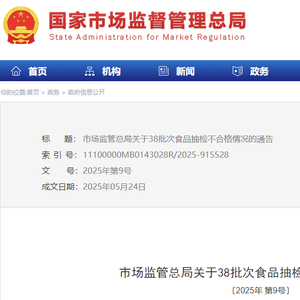 市场监管总局关于38批次食品抽检不合格情况的通告〔2025年 第9号〕