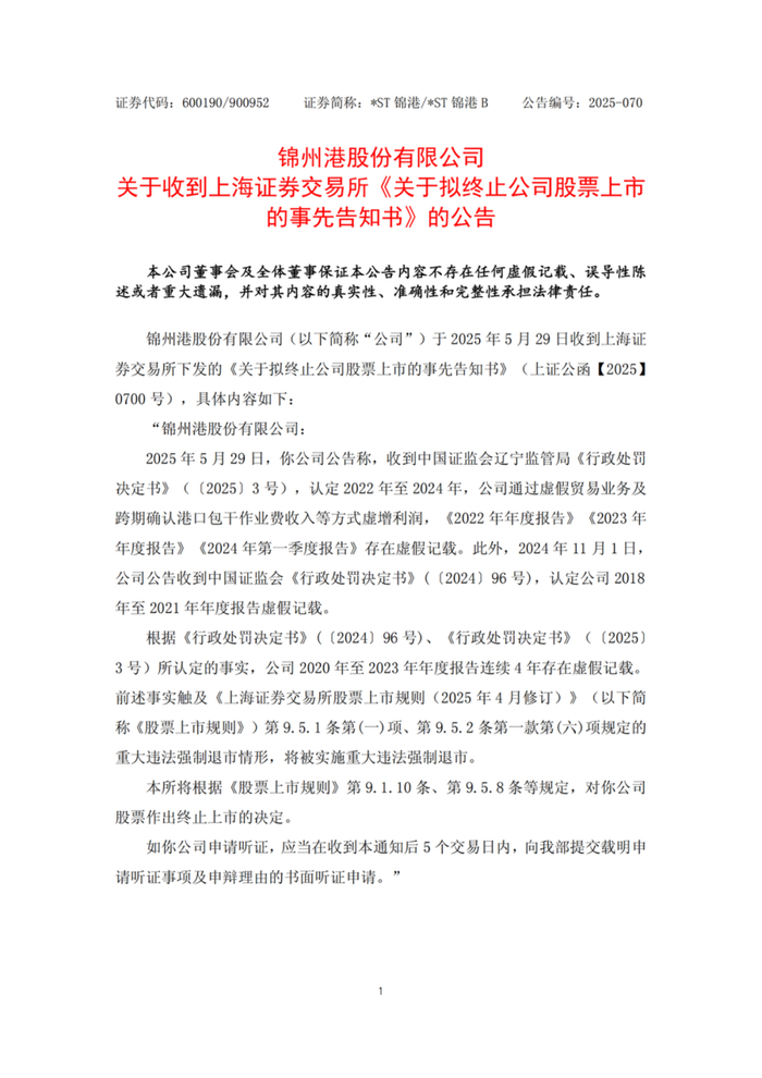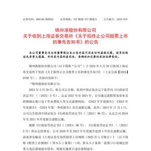 锦州港公告:总裁、财务总监、原董事长被采取刑事强制措施
