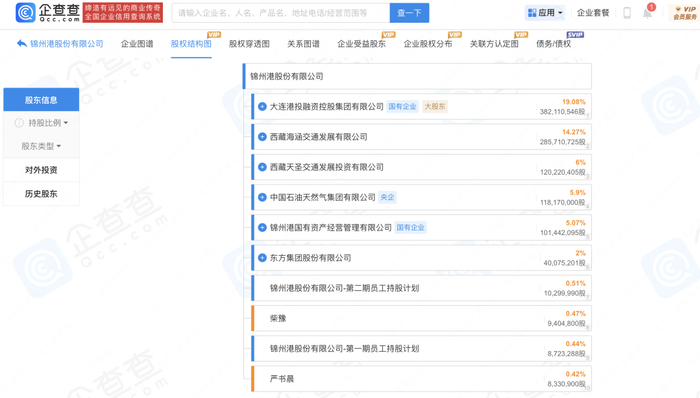目前锦州港股份股权结构