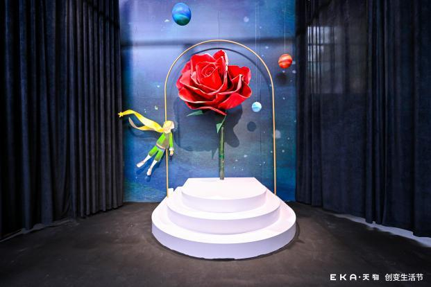 此次,EKA·天物携手法国经典文学《小王子》,用跨越时空的温暖力量,匠心打造《爱与光的未来》沉浸式艺术展。纪念展以12个主题展区完整复刻星际童话的哲思宇宙。展览以“亲手触碰纯真”为线索,打造可游可玩的叙事场域,“B612星球”展区作为旅程起点,观众可参与手工DIY拼装专属小行星,让每个人成为自己宇宙的“小王子”;“唯一的玫瑰”展区中千朵玫瑰构成无尽花园,隐喻“爱与驯服”的永恒命题。