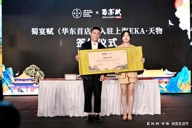 蜀宴赋以中国传统礼乐文化为背景,以舞乐为楔、以光影为境、以美食为媒,致力于让消费者在一场充满仪式感的宫廷盛宴中,体验中国传统礼乐典仪和蜀地宴饮美学。品牌对于传统文化的致敬与EKA·天物承载对匠人精神的尊重与传承不谋而合。据悉,其以蜀地宴饮文化融合沪上海派文化的华东首店将于今年夏季在EKA·天物落成,标志着这一现象级文化餐秀品牌以“时空折叠”的沉浸式体验重构传统文化消费场景,让更多跨文化消费者在沉浸式餐秀体验中感受华夏宴饮美学的魅力。