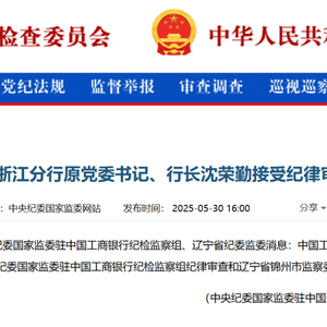 5月30日,中央纪委国家监委官网通报:中国工商银行浙江分行原党委书记、行长沈荣勤涉嫌严重违纪违法,目前正接受中央纪委国家监委驻中国工商银行纪检监察组纪律审查和辽宁省锦州市监察委员会监察调查。