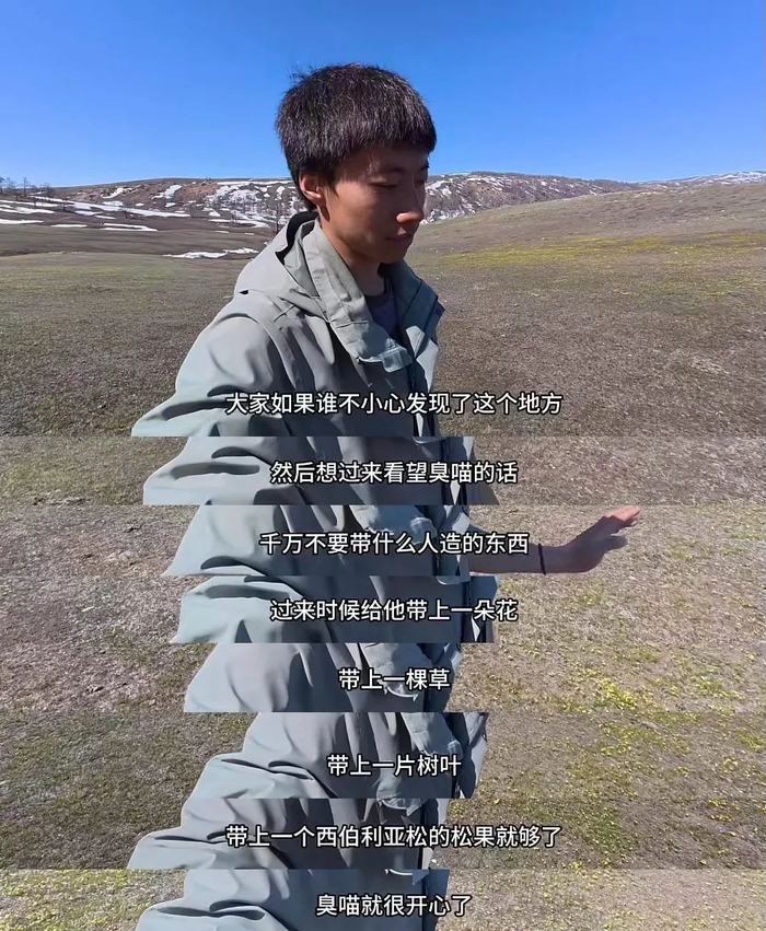 赵朔对着视频另一端的网友表达希望:如果今后有人来看悟空,“不要带什么人造的东西,一朵花,一片树叶,一颗松果,臭喵就很开心了”。抖音上,这条长达18分钟的视频迄今为止拥有超过203万次点赞。