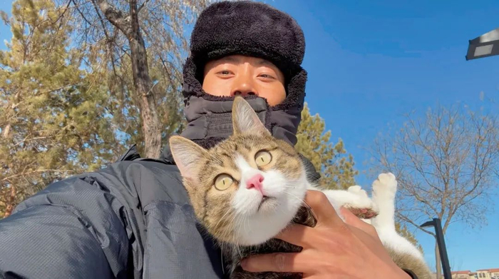 可只有悟空被赵朔留了下来。“悟空”是赵朔为它取的名字,“希望它能像孙悟空一样,拥有72般变化和72条性命”。而赵朔自称是悟空的“师父”。“师徒俩”一起穿越喀纳斯的冰天雪地,观赏赛里木湖的天鹅,爬上遍布西伯利亚落叶松的山坡……赵朔同时给予悟空无微不至的照顾和充分的自由,带它去打疫苗、做驱虫,换着花样给悟空买鲜肉和鸡蛋。一人一猫分一个蛋,赵朔会把一整个蛋黄都给悟空。