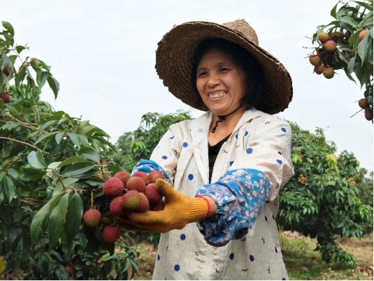 早上五点,庞小宇就和当地村民一起,采摘一串串沉甸甸的荔果,她向《好博会》报道组表示:“去年冬天和今年春天的天气条件有利于花芽分化,今年收成还是挺可观的。”