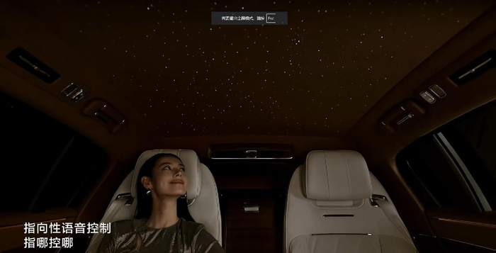 同时,车辆支持隔空手势召唤,车内指向性语音控制可实现指哪控哪,支持后排车门、副驾座椅、隐私光幕玻璃、激光投影与幕布调节控制,为用户带来了前所未有的便捷和智能体验。