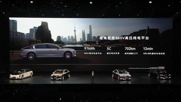 纯电版车型搭载 97kWh 高压电池平台,同样支持 5C 超充,CLTC 纯电续航里程 702km,电量从 10%-80% 最快仅需 12 分钟。这样的智能增程平台和出色的续航能力,为用户提供了更加便捷、无忧的出行保障。