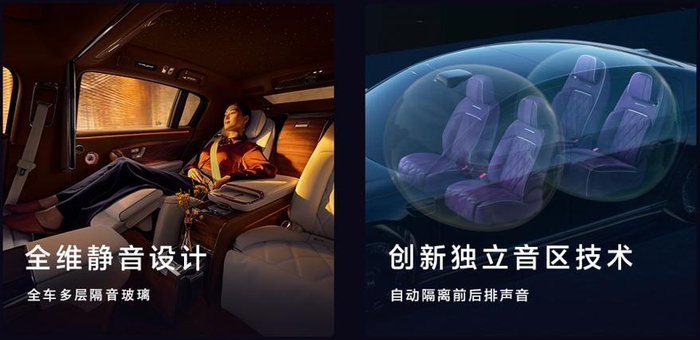 支持隐私声盾 2.0,对话内容屏蔽率 90%,配备全新的白噪音算法,舒适度可提升 1 倍,同时还能自动隔离前后排声音,声场隔离率可达 99%。搭载鸿蒙多模态脑波调频系统,结合呼吸引导、助眠音乐、氛围灯可使用户在车内入睡速度快 1 倍,为用户打造了一个私密、安静、舒适的休息空间。