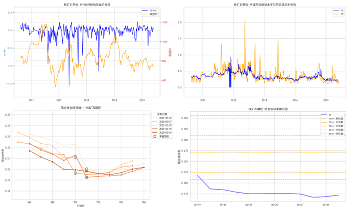 隐含波动率回顾:本周黑色类商品期权各个品种主力合约隐含波动率,大多处于较低历史区间。