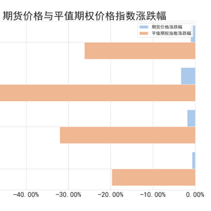 标的价格&平值期权价格指数:能化类期货价格波动不一,烧碱涨幅为:1.32%。PTA跌幅为:0.34%, 对二甲苯跌幅为:0.51%。平值期权价格指数方面,PTA跌幅为:3.58%, 甲醇跌幅为:3.60%;