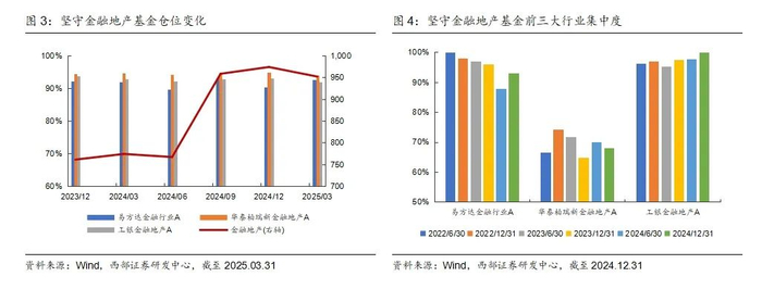 从25Q1季报来看,3只基金仍以金融地产行业为主,但因仅计算前十大持仓,各行业占比均有降低。