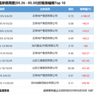 5月30日,正荣地产控股公告,“H20正荣3”将自2025年6月3日起在上海证券交易所固定收益证券综合电子平台复牌,复牌后继续按照《关于为上市期间特定债券提供转让结算服务有关事项的通知》规定转让。