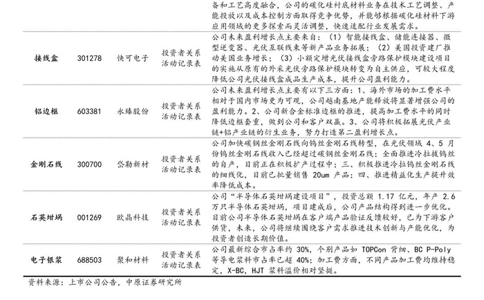 【安彩高科】。2025年5月,公司在投资者关系活动记录中披露,公司半导体项目石英管产品已顺利销售,半导体项目营收受市场环境、产能释放等因素影响。公司将持续开展石英制品的研发与应用。(资料来源:公司公告)