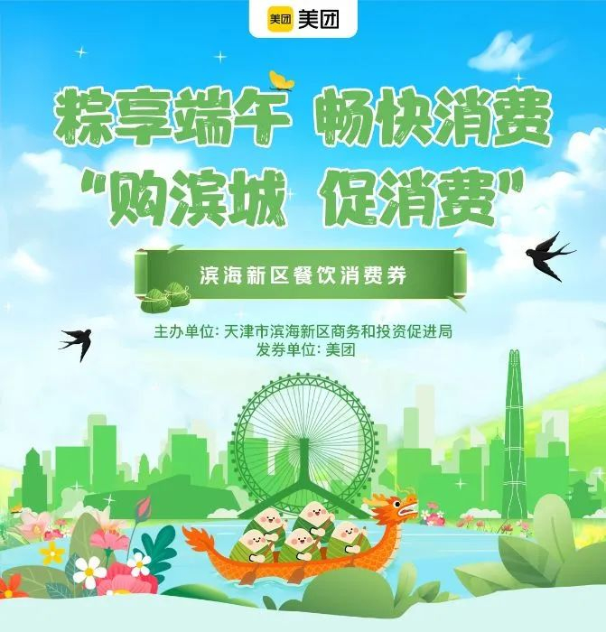 2025年端午佳节至,为弘扬传统文化、激发消费活力,滨海新区商务和投资促进局联合区内重点商业载体,以“粽享端午 畅快消费”为主题,推出总额400万元的餐饮及手机数码消费券,并联动各大商超打造集民俗体验、惠民促销、文旅融合于一体的消费盛宴,为市民和游客营造多元化的节日消费场景。