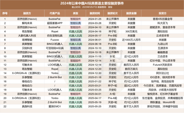 半年5起亿级融资事件,12家公司抢滩AI玩具赛道,谁将成为下一个“泡泡玛特”?
