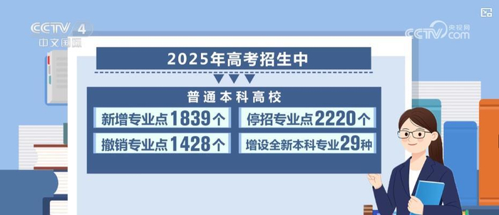 据初步统计,今年高考招生中,“双一流”高校本科扩招人数已超2万人。不仅增加优质学位供给,高校专业布点也进行了优化调整。2025年高考招生中,普通本科高校共新增专业点1839个,停招专业点2220个,撤销专业点1428个,增设全新本科专业29种。教育部还首次建立了战略急需专业超常设置机制,开辟即时响应“绿色通道”,指导北京航空航天大学、北京理工大学、北京邮电大学等6所高校设置了低空技术与工程专业。