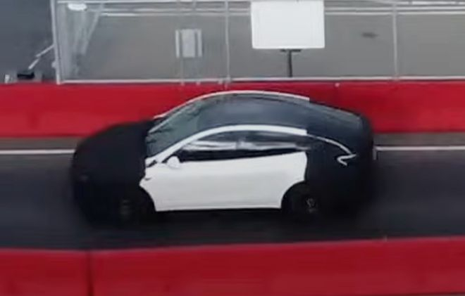 根据曝光的航拍视频,这款特斯拉原型车前后端覆盖了轻度伪装,整体外观基本上和常规 Model Y 没有差异。