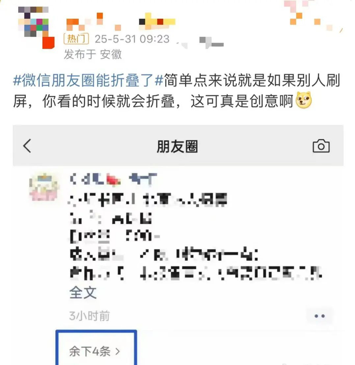 不过,有网友发现,自己发多几条生活日常朋友圈也会被折叠。