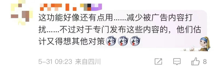 对于微信推出的朋友圈折叠新功能,很多网友都表示“舒服了,可以过滤掉不想看到的消息”。