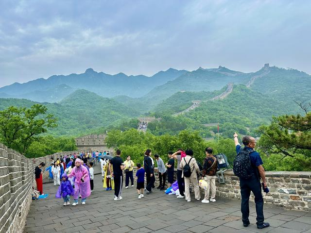 面对降雨天气,八达岭长城景区在游客服务中心备足雨具、热水及应急物资,供游客免费取用,并在入口处为游客免费发放雨衣。同时,工作人员在长城各险峻路段主动引导客流,耐心提醒游客扶栏慢行,并主动背负行动不便的老人、细心帮扶孩童安全上下台阶。