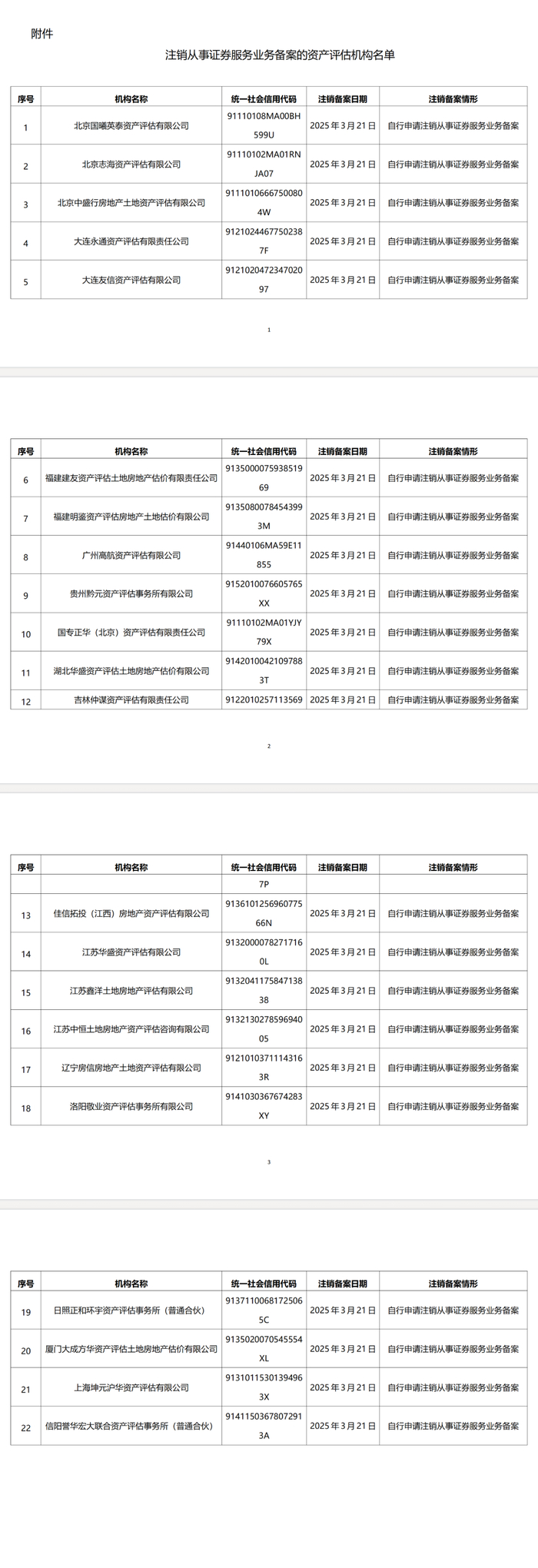 刚刚!证监会发布:两个月42家资产评估机构注销从事证券服务业务备案!
