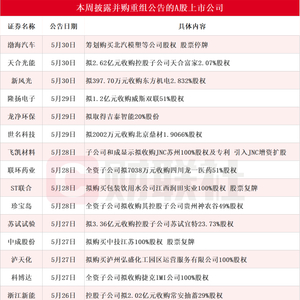 龙头三连板 本周披露并购重组进展的A股名单一览