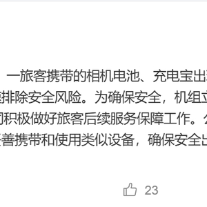 公司积极做好旅客后续服务保障工作。公司提醒广大旅客,严格遵守民航安全规定,妥善携带和使用类似设备,确保安全出行。