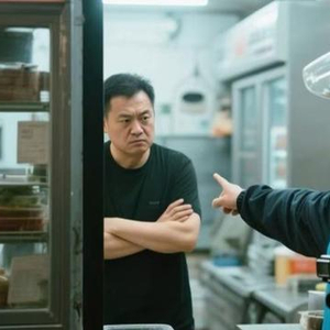 骑手和商家在送餐过程中对峙。 图为AI虚构制图