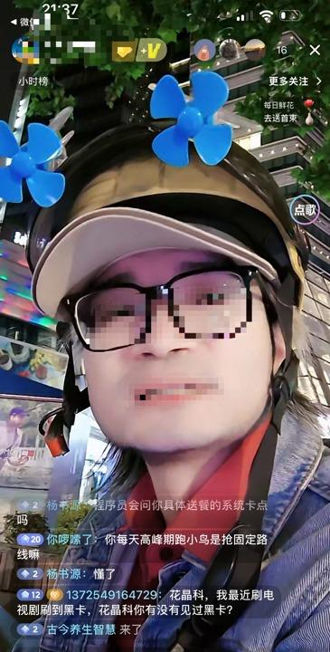 花田被外卖平台永久封禁的事,当时在同城的骑手博主圈内也都传开了,花田只好转投另一家外卖平台谋生了,现在他只在每天吃饭时直播一会儿。