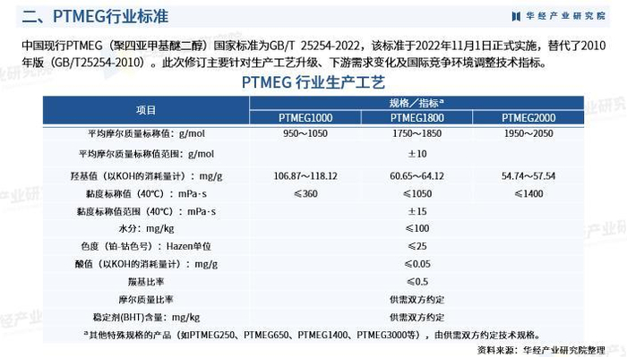 中国现行PTMEG(聚四亚甲基醚二醇)国家标准为GB/T 25254-2022,该标准于2022年11月1日正式实施,替代了2010年版(GB/T25254-2010)。此次修订主要针对生产工艺升级、下游需求变化及国际竞争环境调整技术指标。