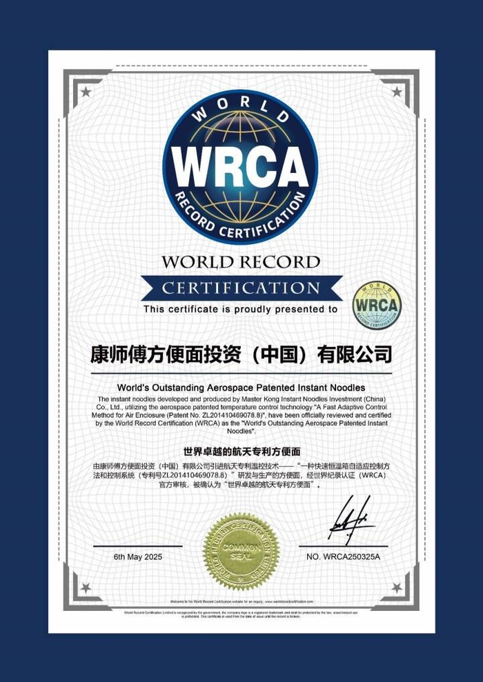 在保证食安的底线不动摇后,进一步提高产品力?康师傅通过引入航天专利温控技术,提升产品加工温度控制的稳定度和精准性,将高精尖的航天科技转化为惠民实用产品。据悉,2024年,康师傅更是成为了首个获得航天专利的方便面品牌,进一步夯实了产品品质与科技实力。