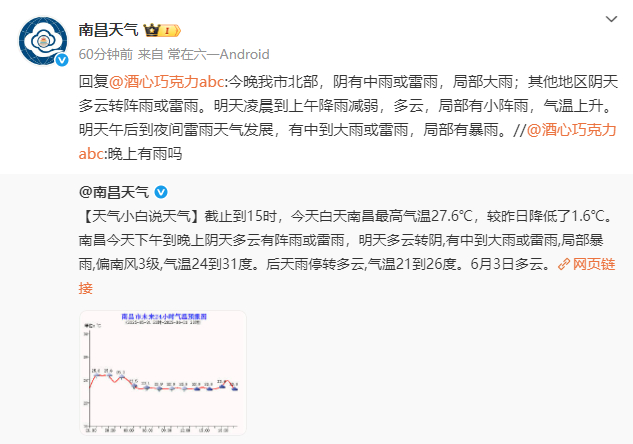据南昌天气微博消息,
